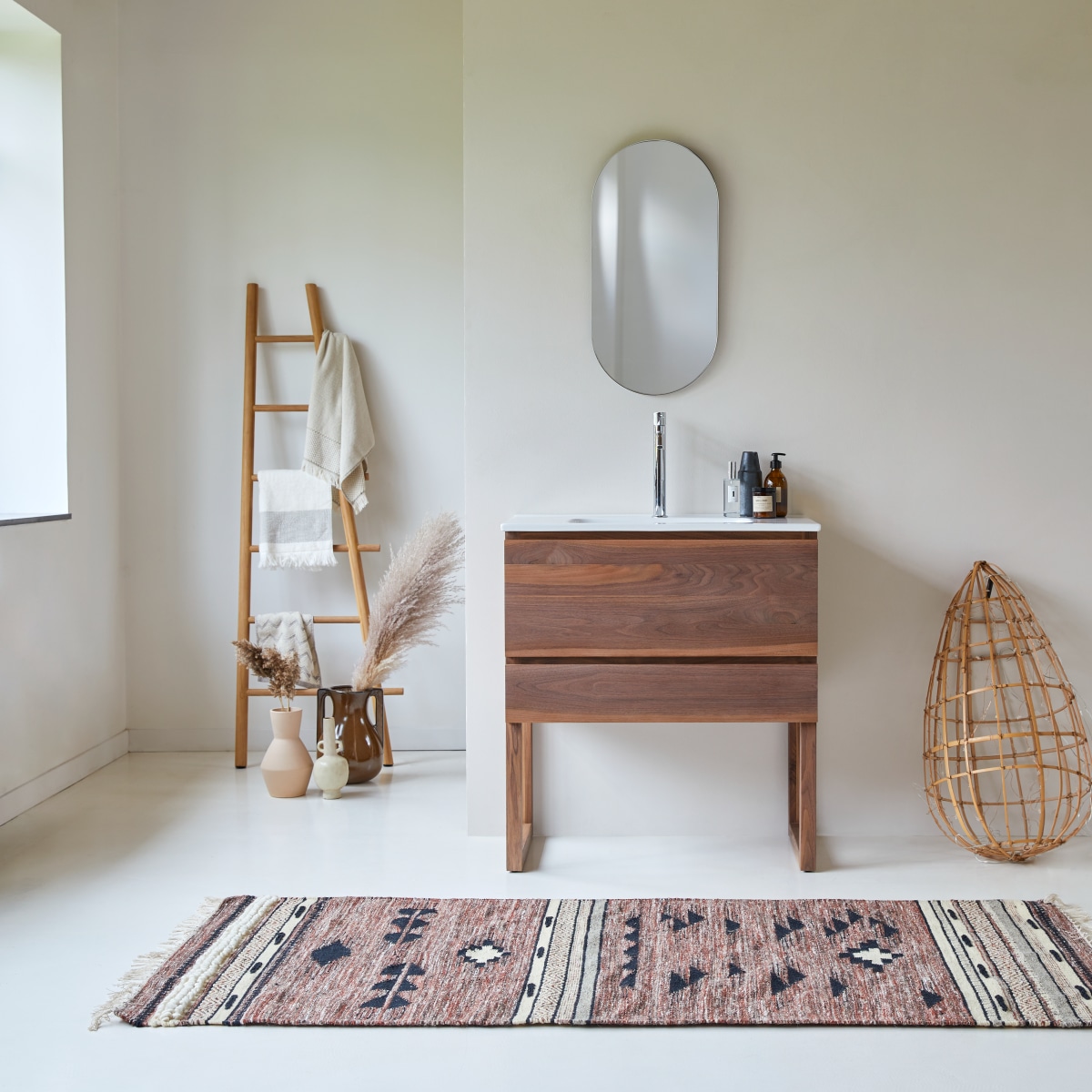 Badezimmermöbel aus massivem Nussbaumholz und Keramik 80 cm