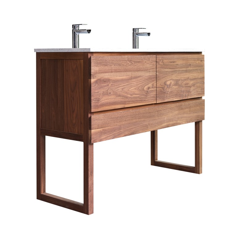Badezimmerschrank aus Nussbaum massiv und Premium-Terrazzo Moon 120 cm