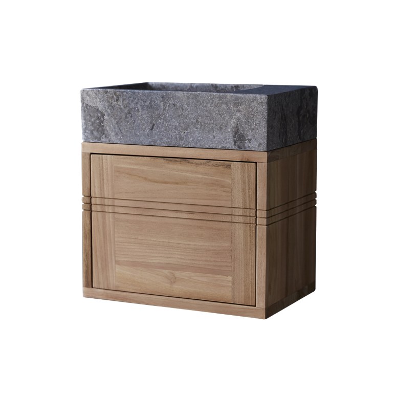 Badunterschrank massivem Teakholz mit Marmor Waschbecken grey