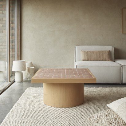 Couchtisch aus Mindiholz und Keramik