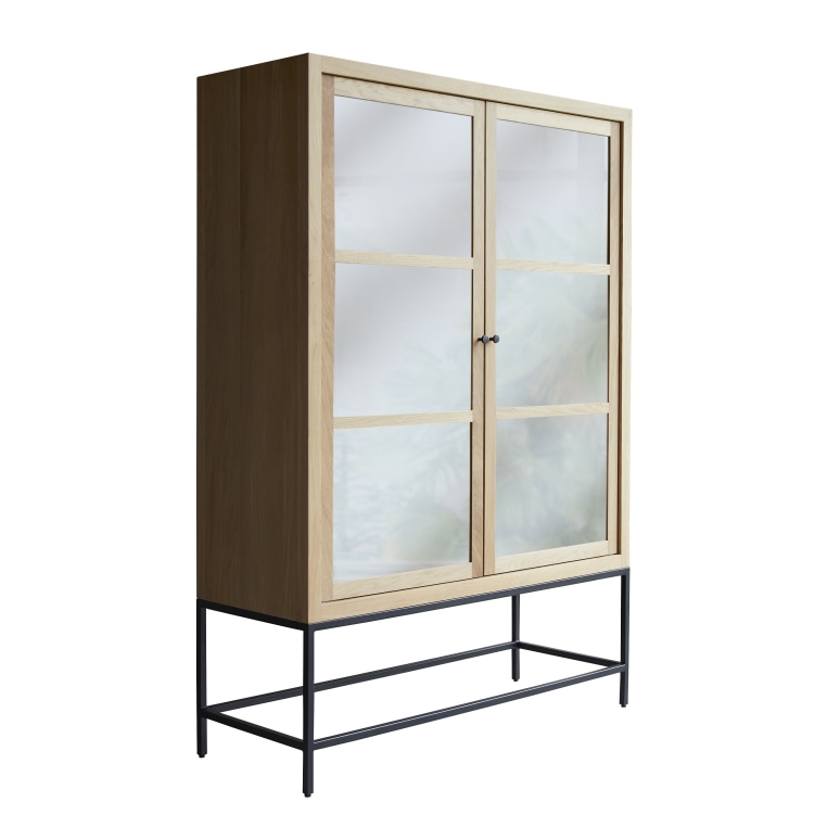 2 Vitrinentüren mit dahinterliegenden Fächern auf 3 Ebenen: