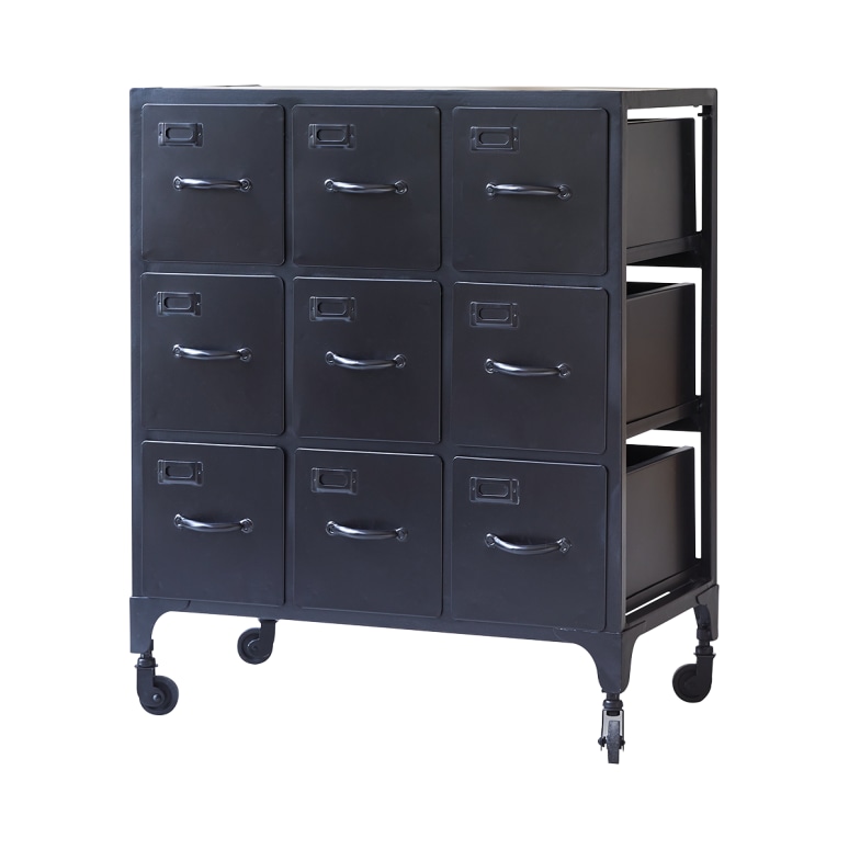 Ausgestattet mit 9 Schubladen, nutzbare Maße H 21 x B 21 x T 39 cm