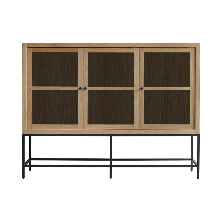 Niedriger Vitrinenschrank aus massivem Teakholz