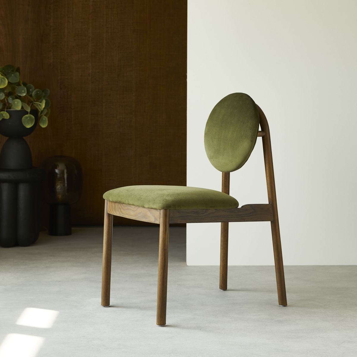 Stuhl aus massiver Eiche und grünem Samt