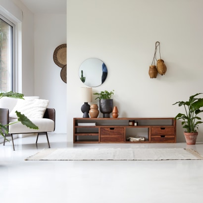 Sheesham, auch als indisches Palisander bekannt, ist ein Massivholz mit einer markanten Maserung. Eventuelle Unregelmäßigkeiten sind der Beweis für seine Authentizität.