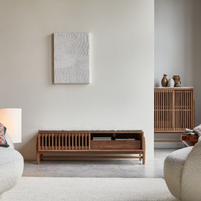 TV-Schrank aus massivem Teakholz und Premium-Terrazzo 140 cm