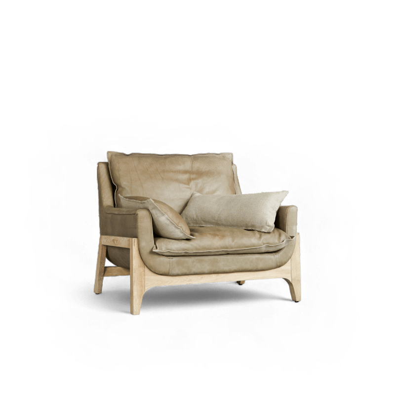Sessel aus massivem Eichenholz und Leder Cheyenne